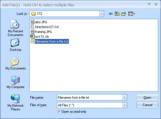 desired files. When all files from the folder are selected, press the “Open” button. Finally to select a range of