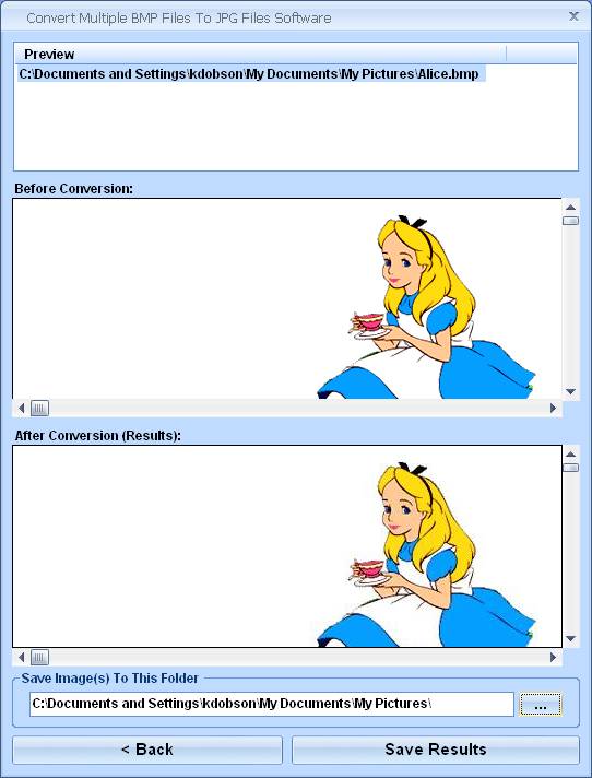 formatted files to the JPG format. The software is very easy to use. The user simply picks one or more BMP file to