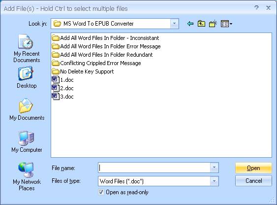 To Add individual files to the “Word File(s)” list simply click on the “Add Word File(s)” button. Doing so will display the “Add File(s)” dialog shown below: