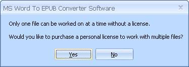 If you select multiple files and have yet to purchase a license for the MS Word To EPUB Converter Software, the following message will be displayed: