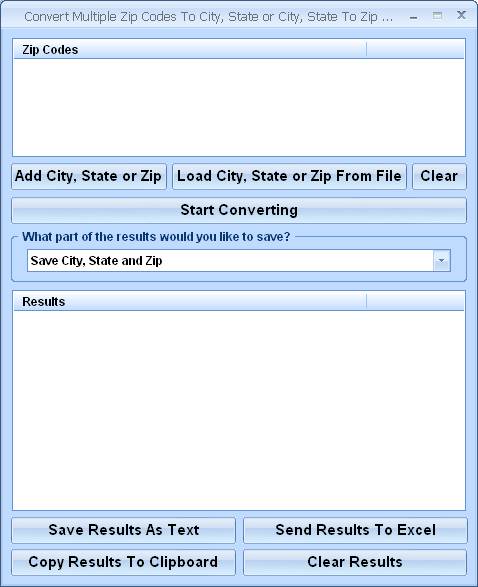 To Zip Codes Software is a convenient method to convert one or many Zip Codes