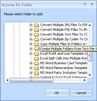 The user simply navigates to the directory containing the text files to be added and presses the OK button to close the dialog and add the full names of all of the files within the selected folder to the list. To close the dialog without adding any filenames the user would press the Cancel button.