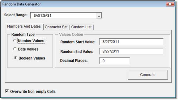 random numbers or dates in a block of MS Excel cells. By instantly creating random numbers, dates,
