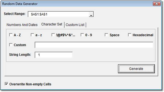 (Numbers, Dates, Characters and Custom Lists) Generator Software will generate